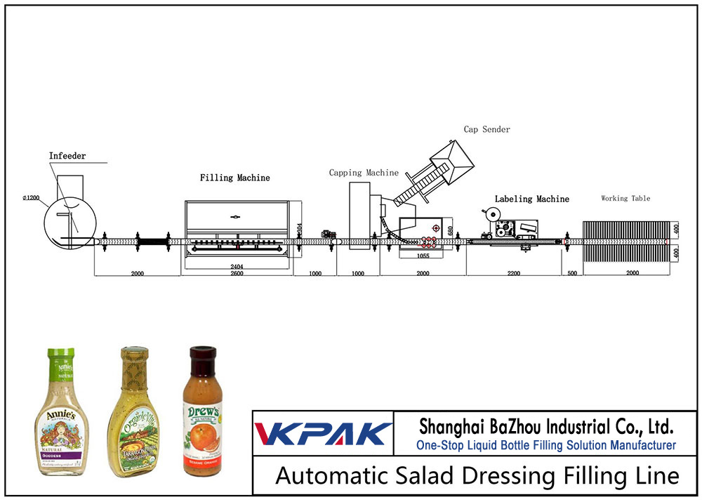 - Iki baris ngisi gaun salad otomatis dilengkapi karo kabeh sing sampeyan butuhake salad kanggo nyandhang lan mlaku. Iki dirancang kanggo botol botol 30-60 saben menit gumantung saka viskositas produk. Miwiti proyek sampeyan saiki kanthi ngisi formulir ing ngisor iki!